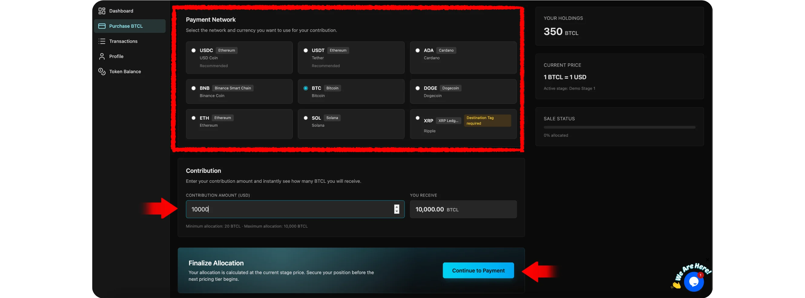 The number of BTCL tokens you will receive