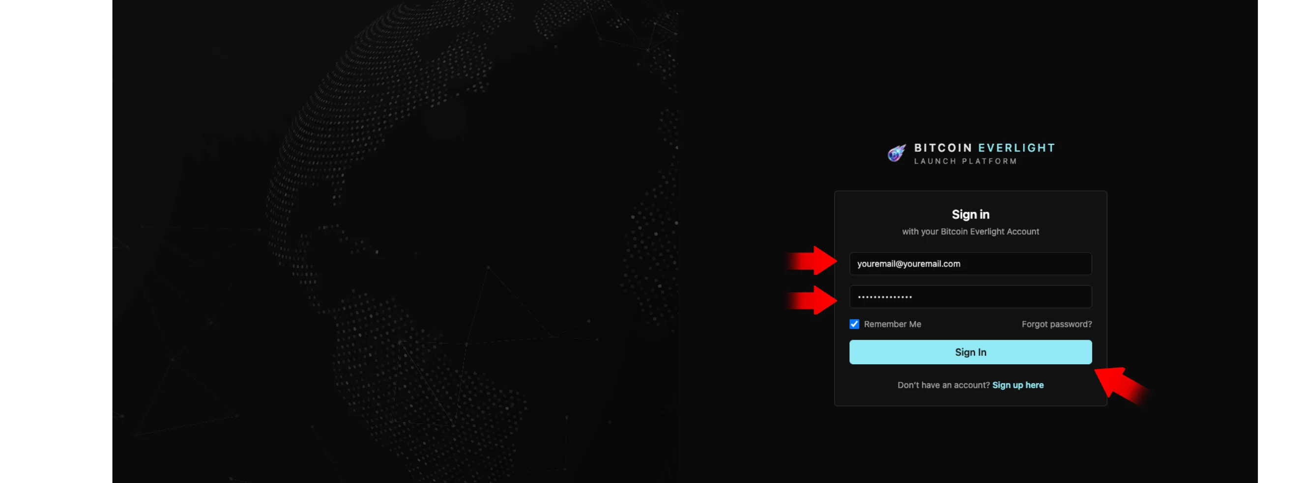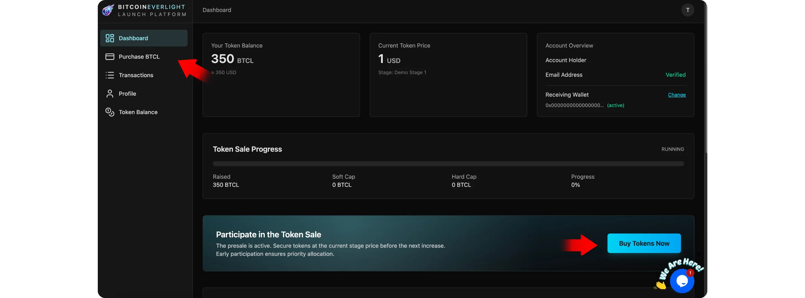 After clicking Buy BTCL, you will be redirected to the Bitcoin Everlight Launch Platform login page.